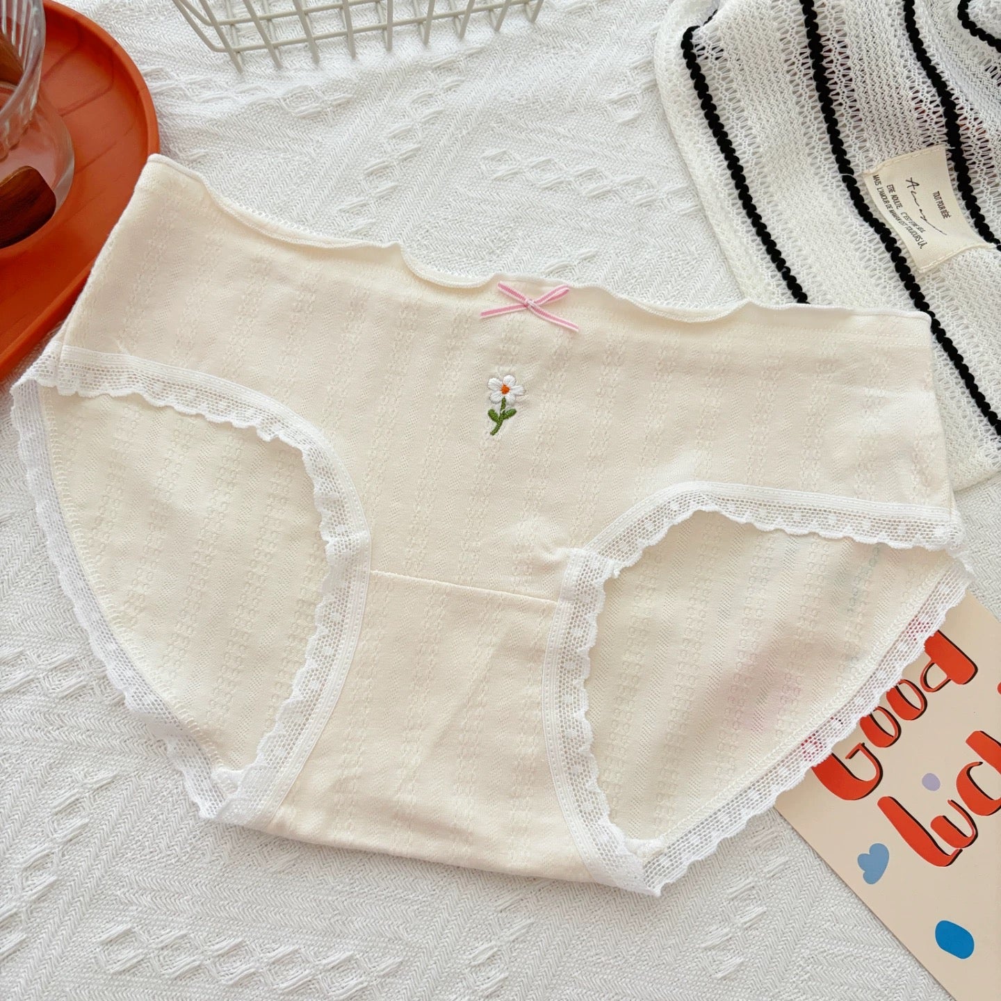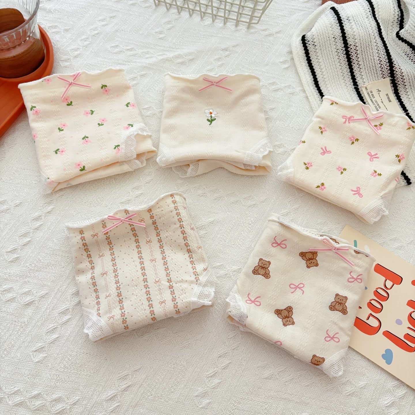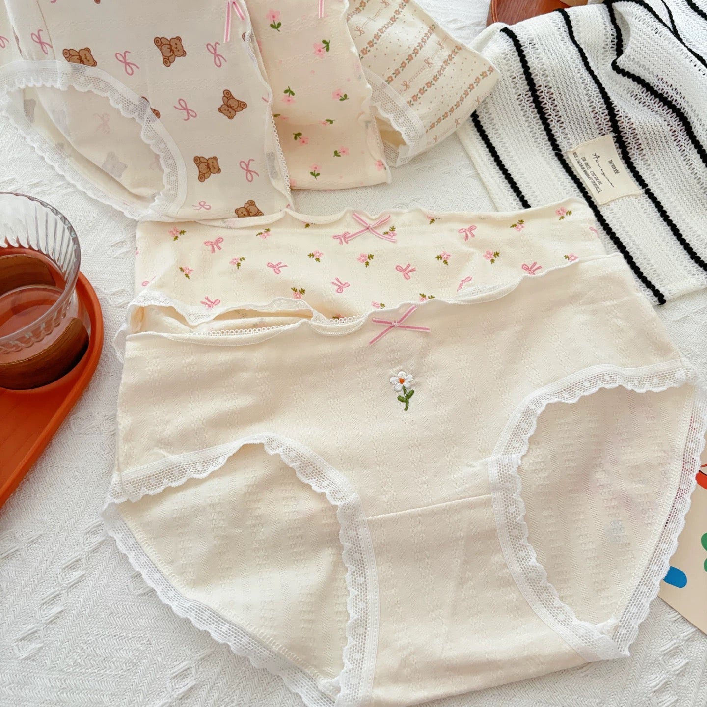 Cartoon Bear Cute Cotton Underwear for Women Low Waist Flower Print Breathable Seamless Panties Student Daily Briefs Lingerie
