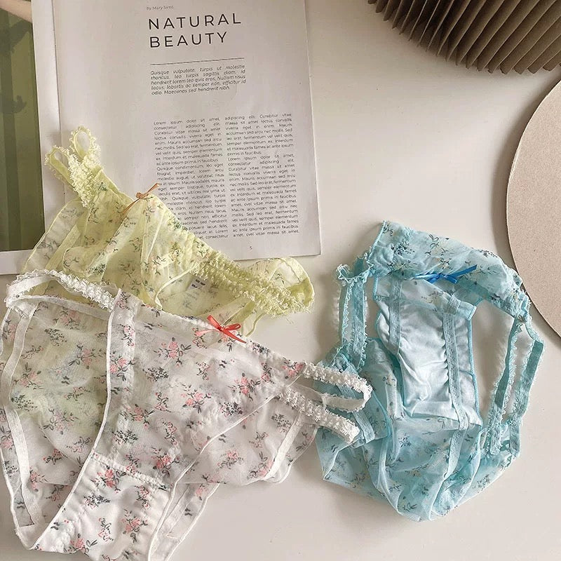 Comfortable Japanese Sweet Breathable Elastic Flower Briefs Lingerie Sexy Elastic Lace Panties Female Underwear