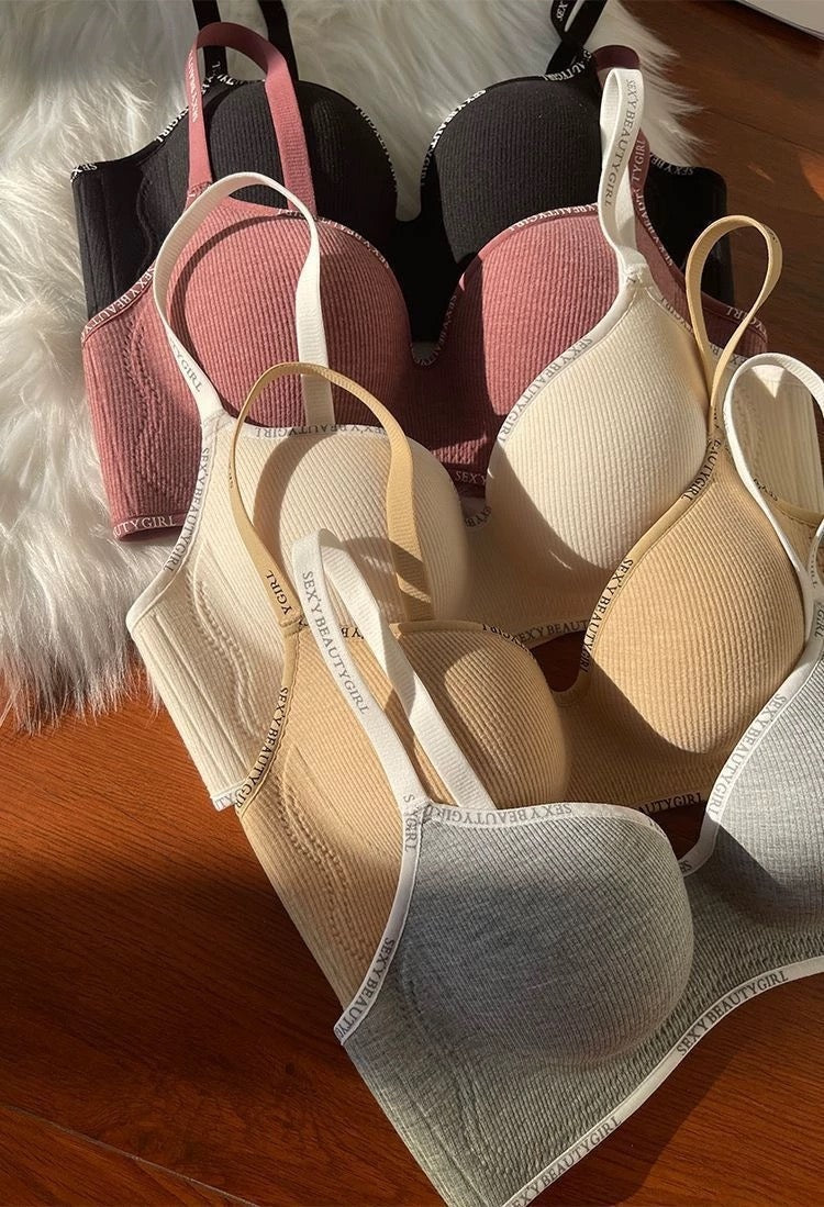 Women’s Wireless Half-Push Bra – No Traces, Anti-Sagging, Seamless Support for Small Busts with Stylish Letter Print