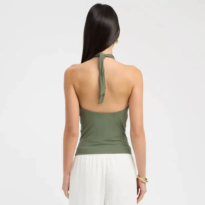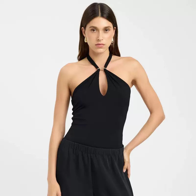 Women'S Solid Color Hanging Neck Tie Hollow Out Metal Ring Strapless Backless Tank Top Summer New Fashion Street Tank