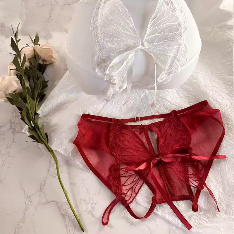Women's Panties Butterfly Embroidery Mesh Transparent Sexy Women's Underwear Low Waist Perspective lace trimThin Briefs